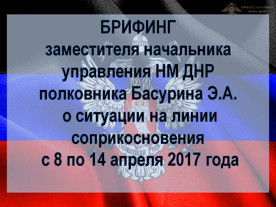 В период с 8 по 14 апреля, в соединениях и воинских частях Народной милиции Донецкой Народной Республики основные усилия были сосредоточены на подготовке к предстоящим командно-штабным учениям. Основной их задачей является выработка единого понимания обстановки на линии соприкосновения и принятие решения в случае обострения ситуации.