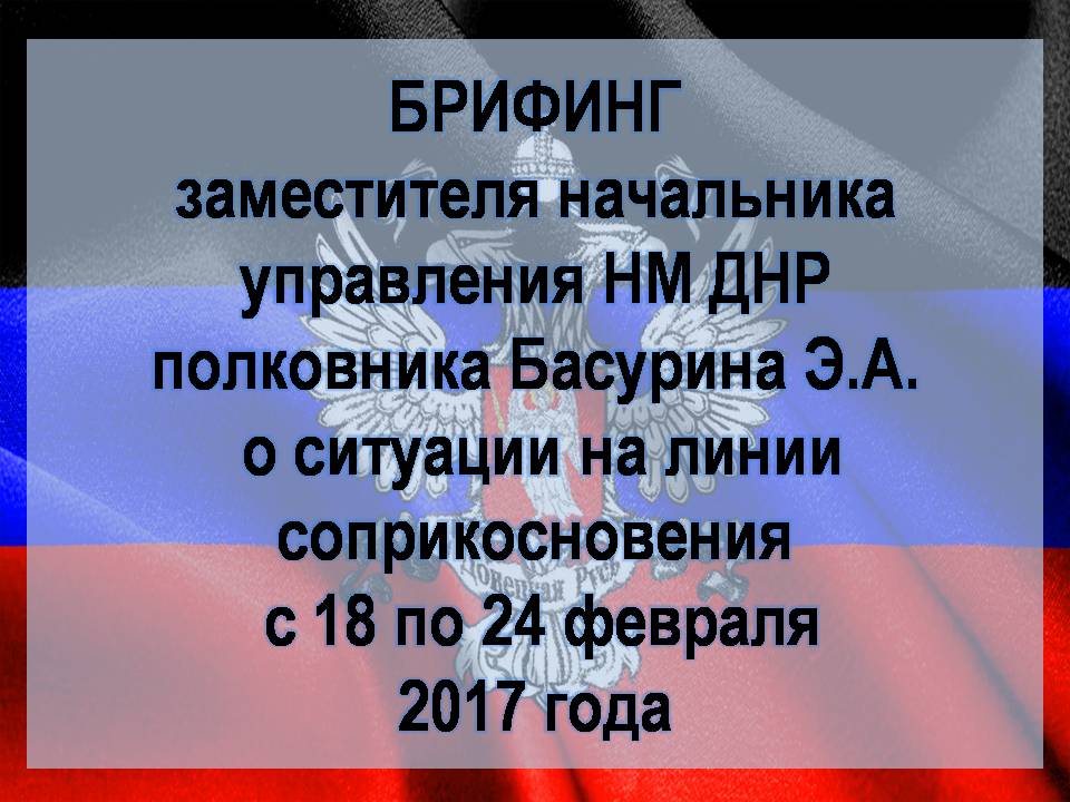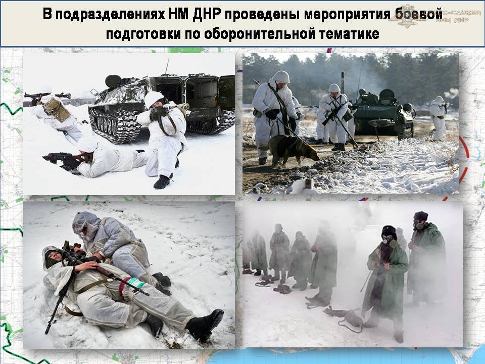 На прошедшей неделе, с 18 по 24 февраля, в соединениях и воинских частях Народной милиции Донецкой Народной Республики, в соответствии с планом, интенсивно проводились занятия с экипажами танков и БМП по выполнению зачетных упражнения по вождению, стрельбе из вооружения боевых машин и стрелкового оружия. Были проведены контрольные занятия со специалистами: по артиллерийской, разведывательной, инженерной подготовке, а также со специалистами по связи и ПВО. Кроме того, проведены тренировки с личным составом специальных подразделений по противодействию ДРГ противника.Мы не однократно заявляли о планах украинского командования и радикальных националистов создать гуманитарную и экологическую катастрофу на территории ДНР. В результате целенаправленных и систематических артиллерийских и минометных ударов по ДФС противник добился своих целей.