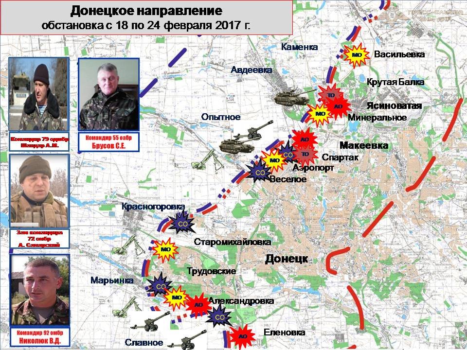 Наша разведка также отмечает рост напряженности в силовых структурах Украины, находящихся в зоне «АТО». В частности, при блокировании выезда националистических подразделений в г. Киев для недопущения их участия в антиправительственных беспорядках, зафиксировано три боестолкновения между подразделениями 72, 79 бригад ВСУ и боевиками ДУК «Правого сектора». Два вблизи н.п. Авдеевка и одно в районе н.п. Старченково. В результате противостояния подразделений ВСУ и «правосеков» потери украинских силовиков составили четверо убитых и шестеро раненых.