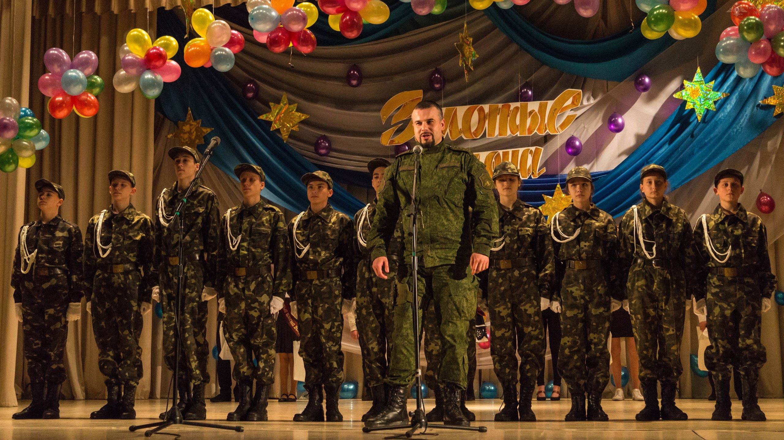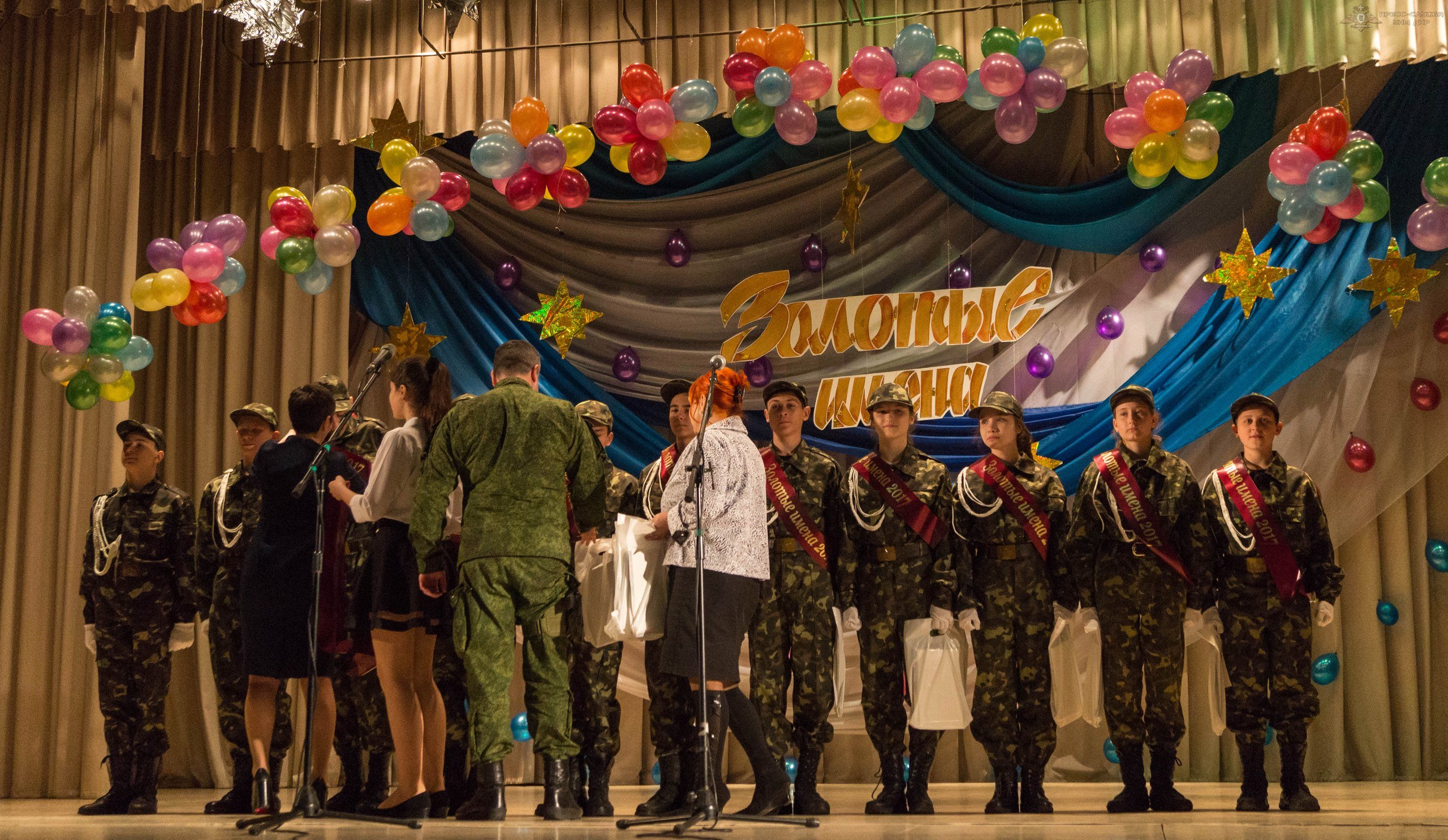 Поощрительные призы детям вручали представители министерств и ведомств Республики, среди них были, в том числе заместитель министра обороны Республики полковник Рура С.А. и начальник Пресс-службы Вооруженных сил ДНР капитан Даниил Безсонов. Они вручили детям памятные издания Золотые звезды героев.