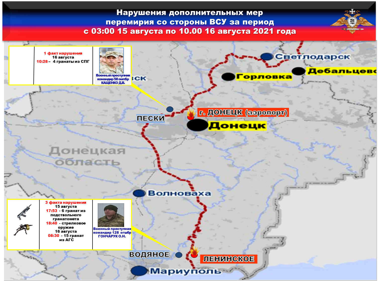 Факты нарушений в оперативном порядке доведены до представителей украинской стороны в СЦКК, с целью своевременного принятия мер к нарушителям перемирия и исключения фальсификации данных о нарушениях режима прекращения огня со стороны украинских боевиков.