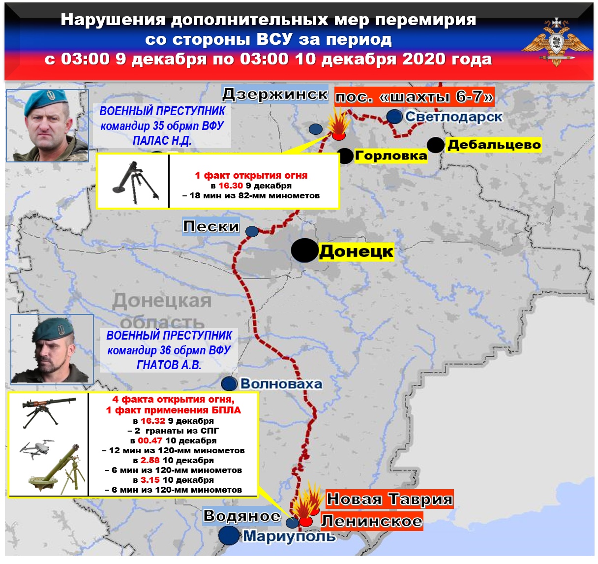 Так, со стороны противника зафиксировано СЕМЬ нарушений, из которых ПЯТЬ - нарушение режима прекращения огня.