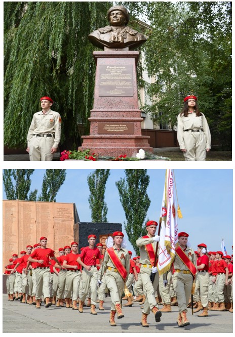 На торжественной церемонии в Киевском районе Донецка прошел митинг по случаю открытия бюста Героя Советского Союза Ивана Панфилова. В церемонии также принимали участие воспитанники военно-патриотического движения «Молодая гвардия – Юнармия», в завершение мероприятия присутствующие возложили цветы к установленному бюсту Героя Советского Союза.