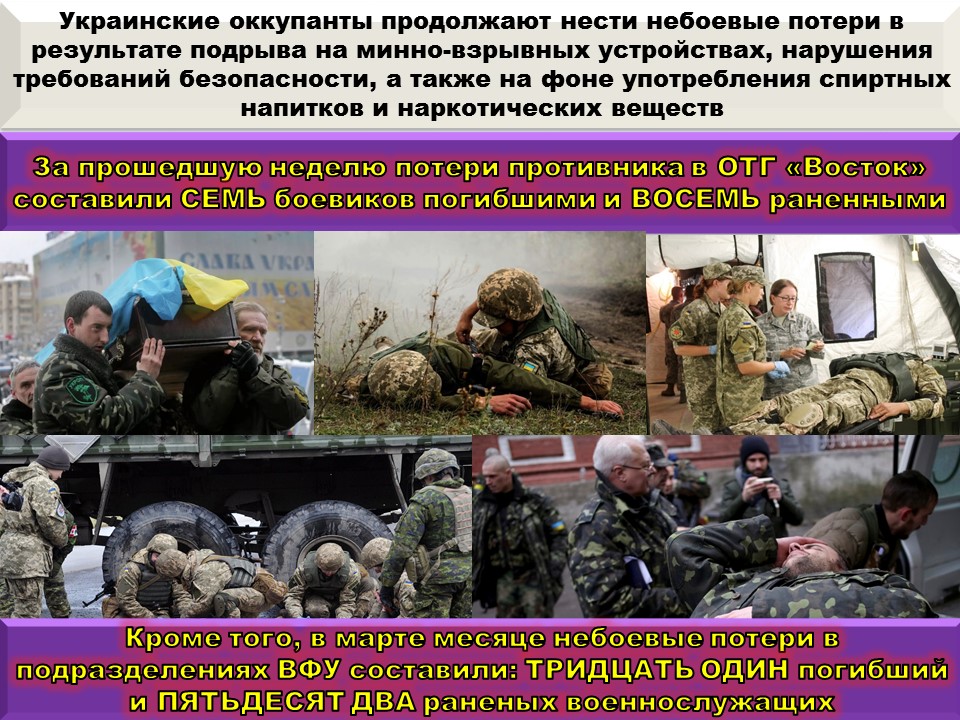 В марте месяце небоевые потери в подразделениях ВФУ составили: ТРИДЦАТЬ ОДИН погибший и ПЯТЬДЕСЯТ ДВА раненых военнослужащих.