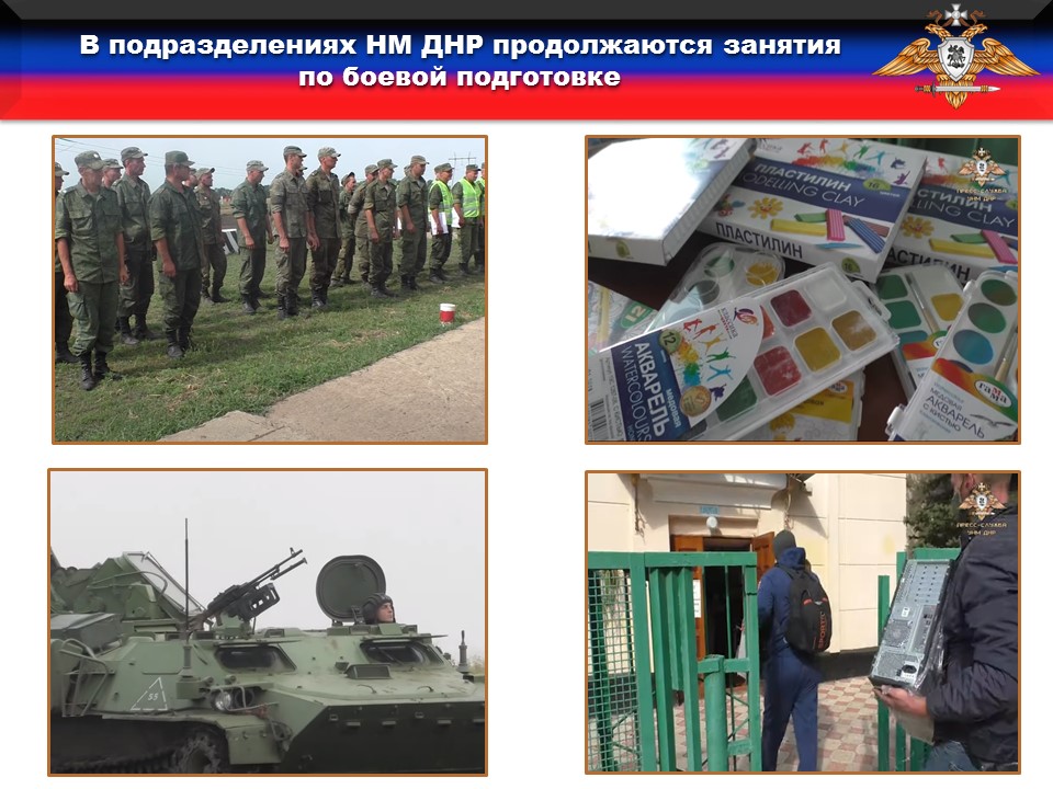Представители Народной милиции совместно с представителем общественной палаты ДНР Екатериной Мартьяновой осуществили доставку компьютеров и канцелярских принадлежностей в детские социальные центры Горловки, Харцызска и Донецка. А так же доставили детскую площадку для детей прифронтового поселка Саханка в Новоазовском районе.