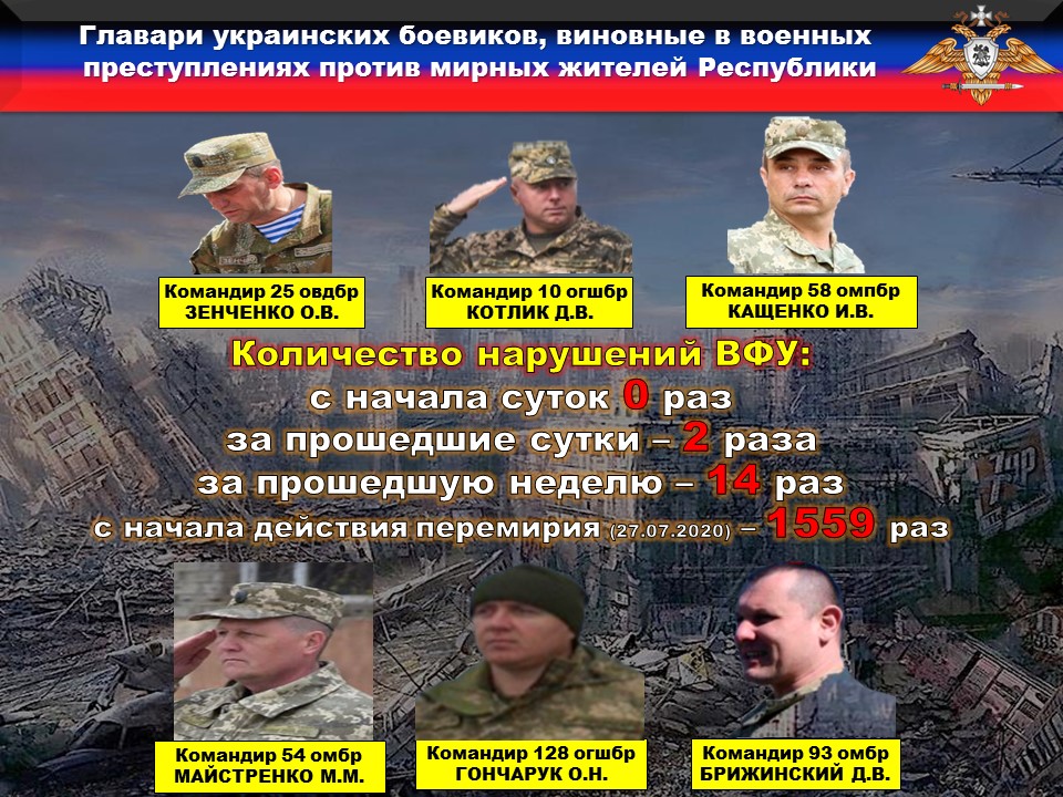 Факты нарушений в оперативном порядке доведены до представителей украинской стороны в СЦКК, с целью своевременного принятия мер к нарушителям перемирия и исключения фальсификации данных о нарушениях режима прекращения огня со стороны украинских боевиков.