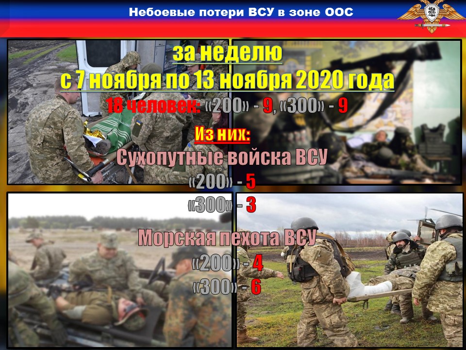 Кроме того, в период с 6 по 12 ноября в госпиталях МАРИУПОЛЯ, КРАСНОАРМЕЙСКА и ЧАСОВ ЯРА от коронавирусной инфекции скончались ВОСЕМЬ военнослужащих.