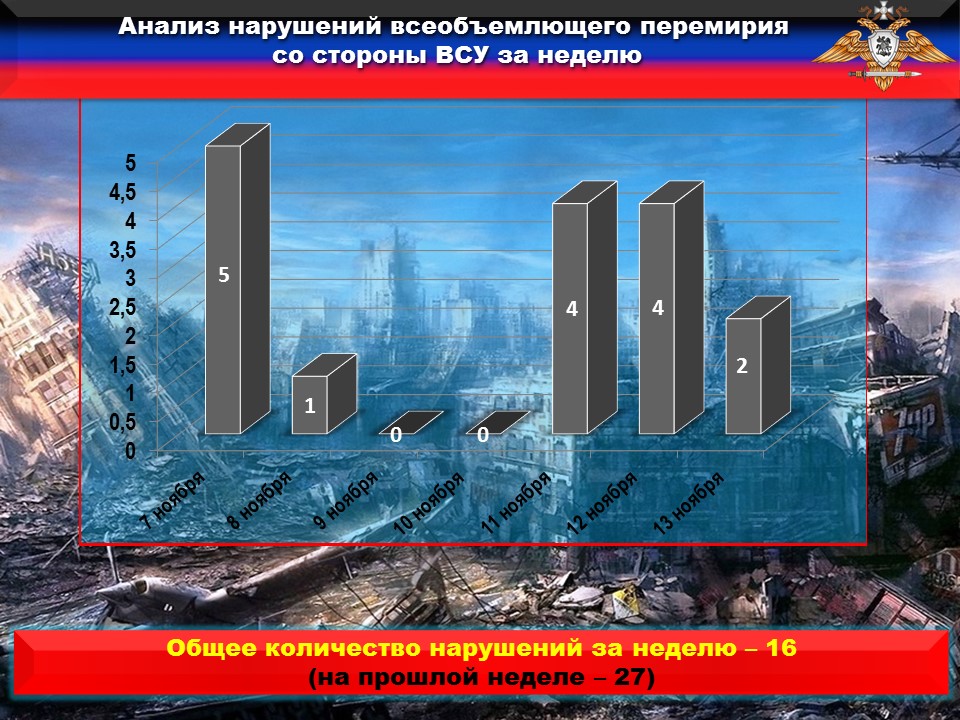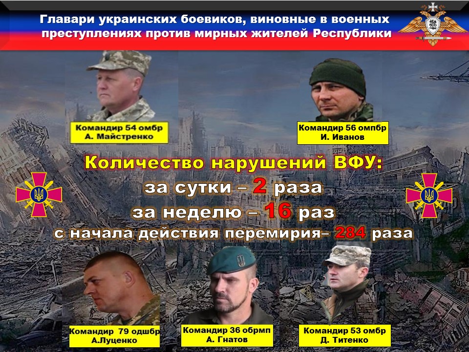 За прошедшую неделю боевики ВФУ ШЕСТНАДЦАТЬ раз нарушили условия дополнительных мер по перемирию.