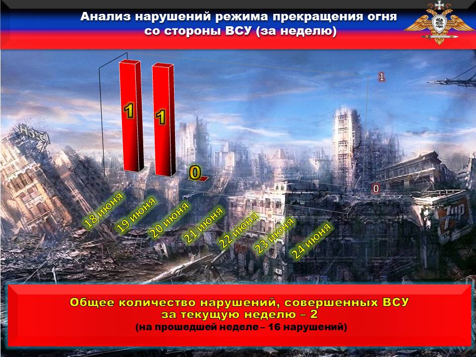 Факт нарушения в оперативном порядке доведен до представителей украинской стороны в СЦКК, с целью своевременного принятия мер к нарушителям перемирия и исключения случаев фальсификации учетных данных о нарушениях режима прекращения огня со стороны украинских боевиков.