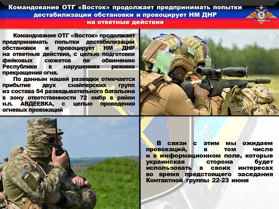 Командование ОТГ «Восток» продолжает предпринимать попытки дестабилизации обстановки и провоцирует НМ ДНР на ответные действия, с целью подготовки фейковых сюжетов по обвинению Республики в нарушениях режима прекращения огня.