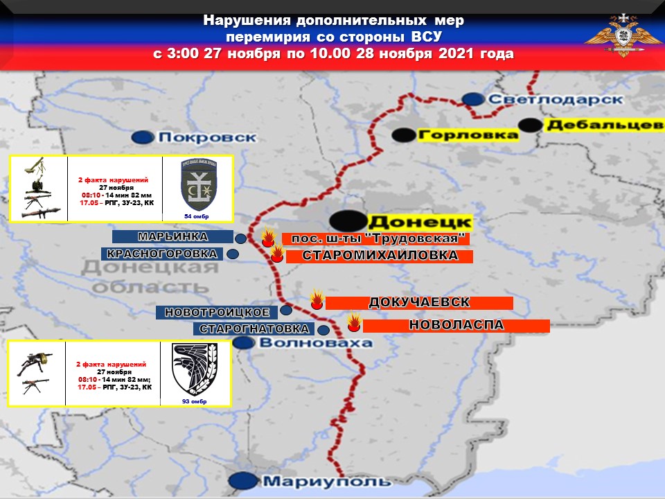 К тому же, наблюдателями СММ второй раз подряд отмечается присутствие боевиков 93 омбр на своих бывших позициях в зоне разведения сил и средств в районе н.п. ПЕТРОВСКОЕ.