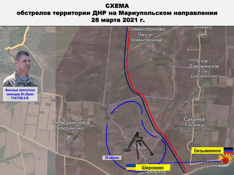 27 марта автомобиль был замечен в районе н.п. ШИРОКИНО, а уже 28 марта боевики 36 бригады подвергли минометному обстрелу н.п. БЕЗЫМЕННОЕ.