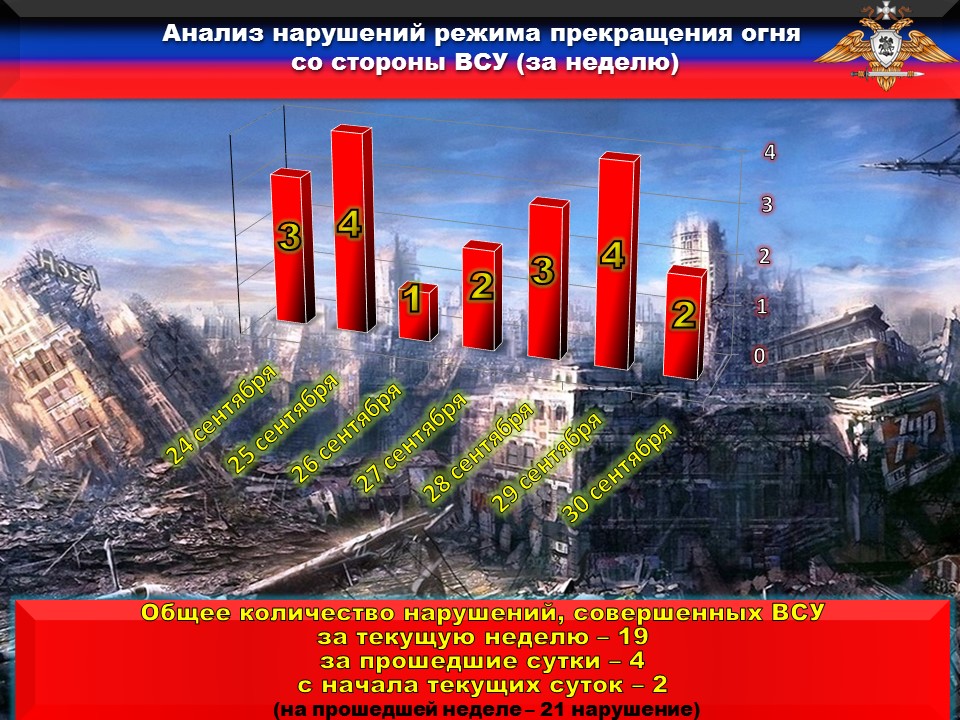 Факты нарушений в оперативном порядке доведены до представителей украинской стороны в СЦКК, с целью своевременного принятия мер к нарушителям перемирия и исключения фальсификации данных о нарушениях режима прекращения огня со стороны украинских боевиков.