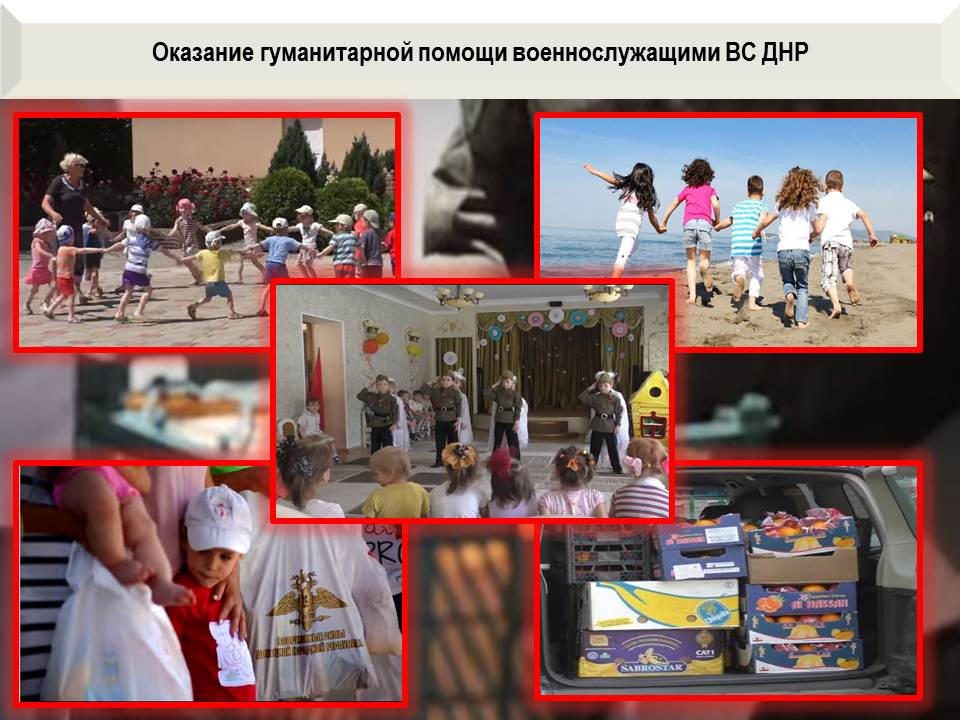 На этой неделе Вооруженные Силы Донецкой Народной Республики провели ряд гуманитарных акций совместно с благотворительными и общественными организациями в рамках программы «Дети рожденные на войне»: оказали помощь детям, проживающим в населенных пунктах ХАНДЖОНКОВА, КОМИНТЕРНОВО, ДОНЕЦК, вблизи линии боевого соприкосновения и страдающих от постоянных обстрелов со стороны украинских оккупантов. А также оказана помощь двум социальным объектам в н.п. МАКЕЕВКА. Мы не только защищаем жителей Республики от агрессии со стороны украинских террористов, но и оказываем им посильную помощь.