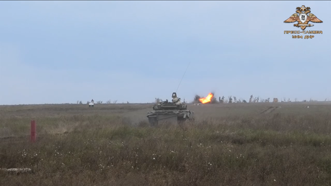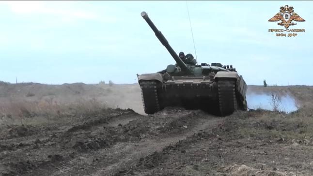 В ходе контрольных занятий на полигоне, военнослужащие по призыву сдали зачёты по вождению танков в сложных условиях местности.