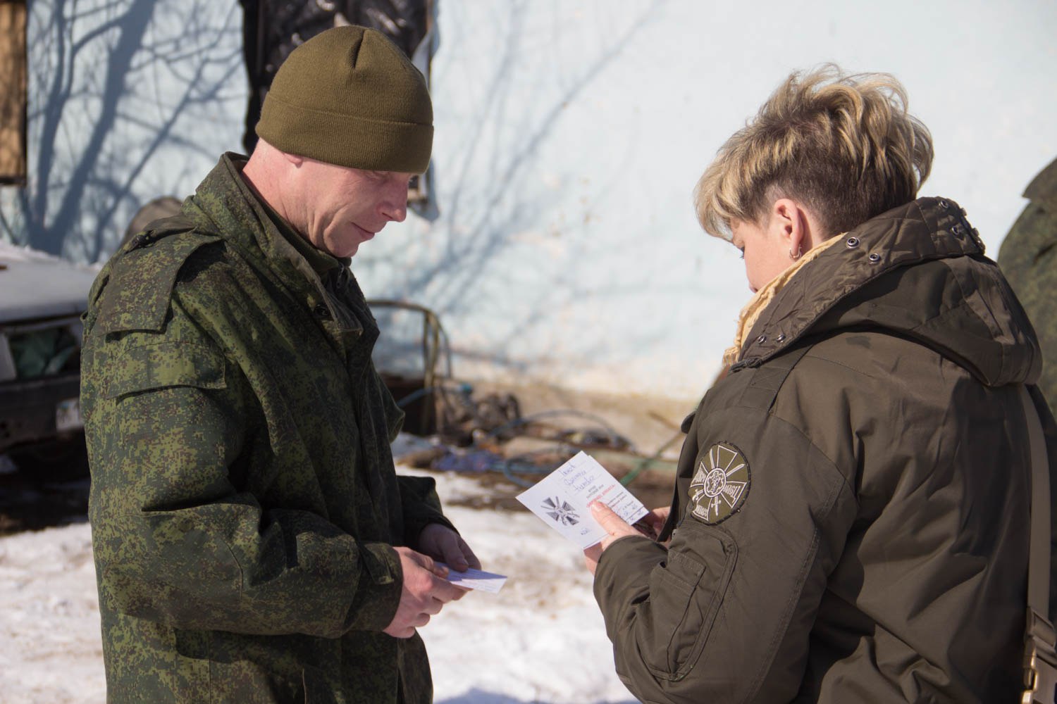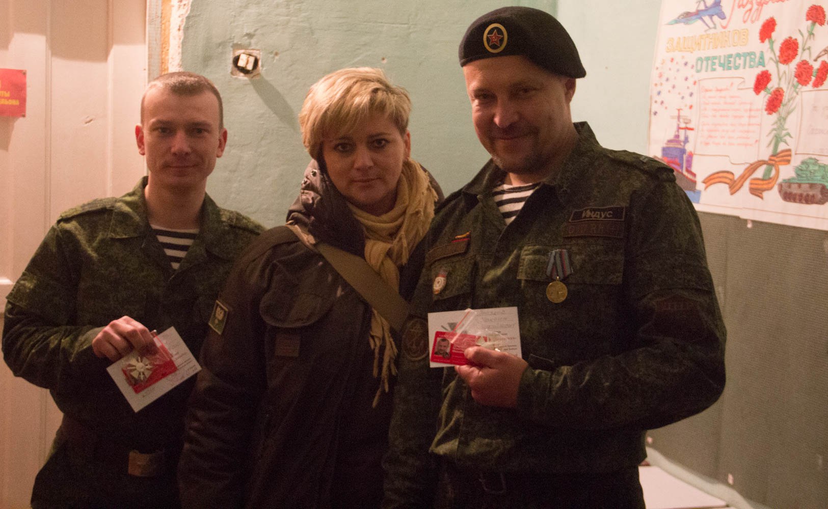 6 марта представитель организации «Союз добровольцев Донбасса» вручила удостоверения и нагрудные знаки "Доброволец Донбасса" бойцам Вооружённых сил ДНР из подразделений стоящих на передовых рубежах обороны республики.