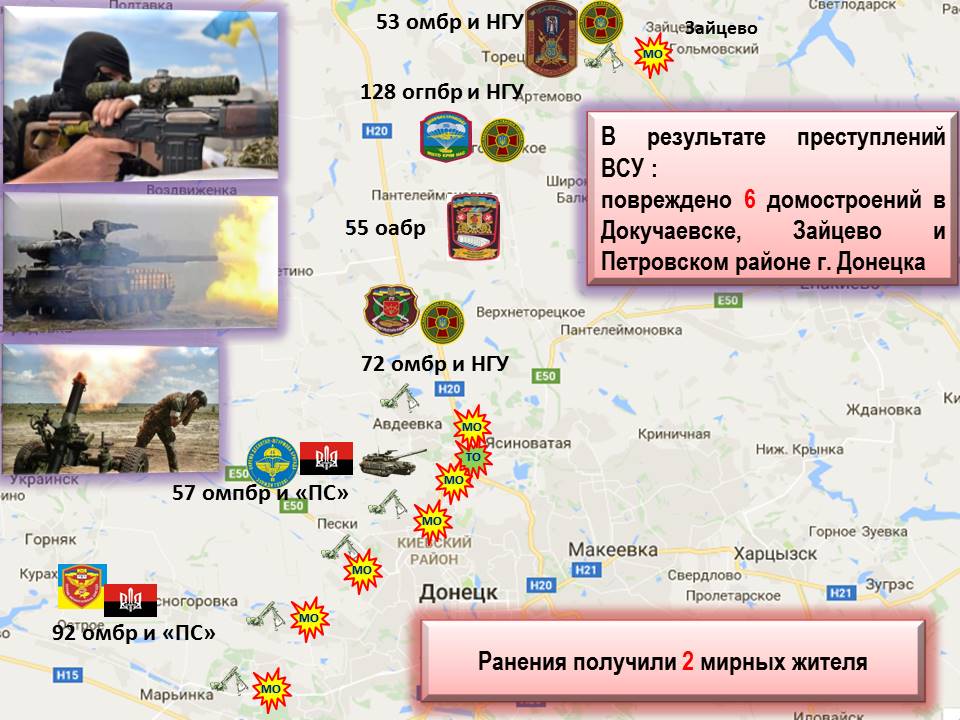 В результате обстрелов со стороны ВСУ ранения получили ДВОЕ мирных жителей. В н.п. Докучаевск повреждения получили ТРИ домостроения по