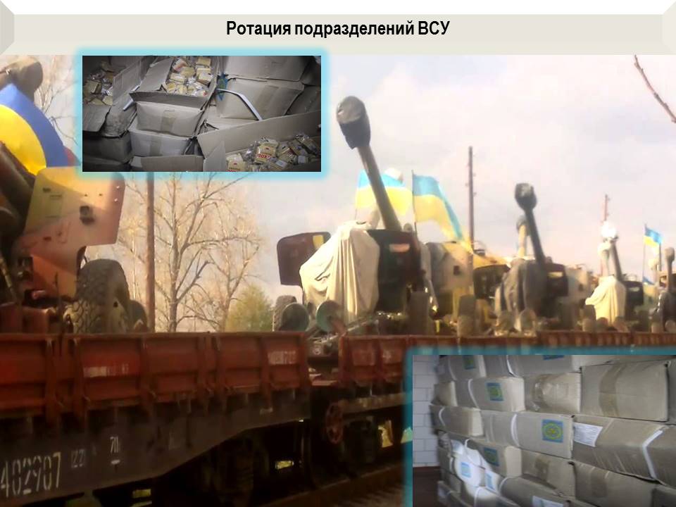 При этом, командование ВСУ, пользуясь выделением колоссальных денежных и материальных средств на обеспечение мероприятий замены соединений и частей на передовой, приступило к их масштабному разграблению. В частности, в течение этой недели в КРАМАТОРСК неоднократно прибывали эшелоны с продовольственным и вещевым имуществом. Однако уже сейчас, установлено, что при проверке имущества представителями служб тыла штаба, так называемой, «АТО», было выявлено несоответствие накладных имеющимся средствам, а именно – недостача 2 400 кг сухих пайков и около 1000 зимних комплектов полевой формы одежды. Это только те факты, которые удалось вскрыть.