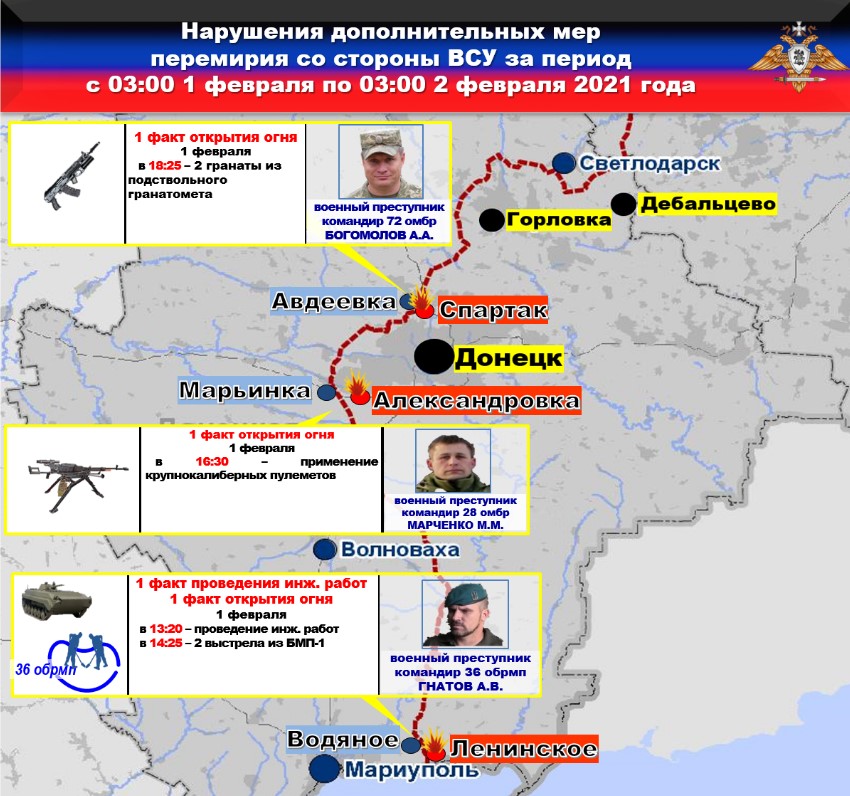 Вышеперечисленные факты подтверждаются ежедневным отчетом ОБСЕ №24/2021 от 1 февраля 2021 г.