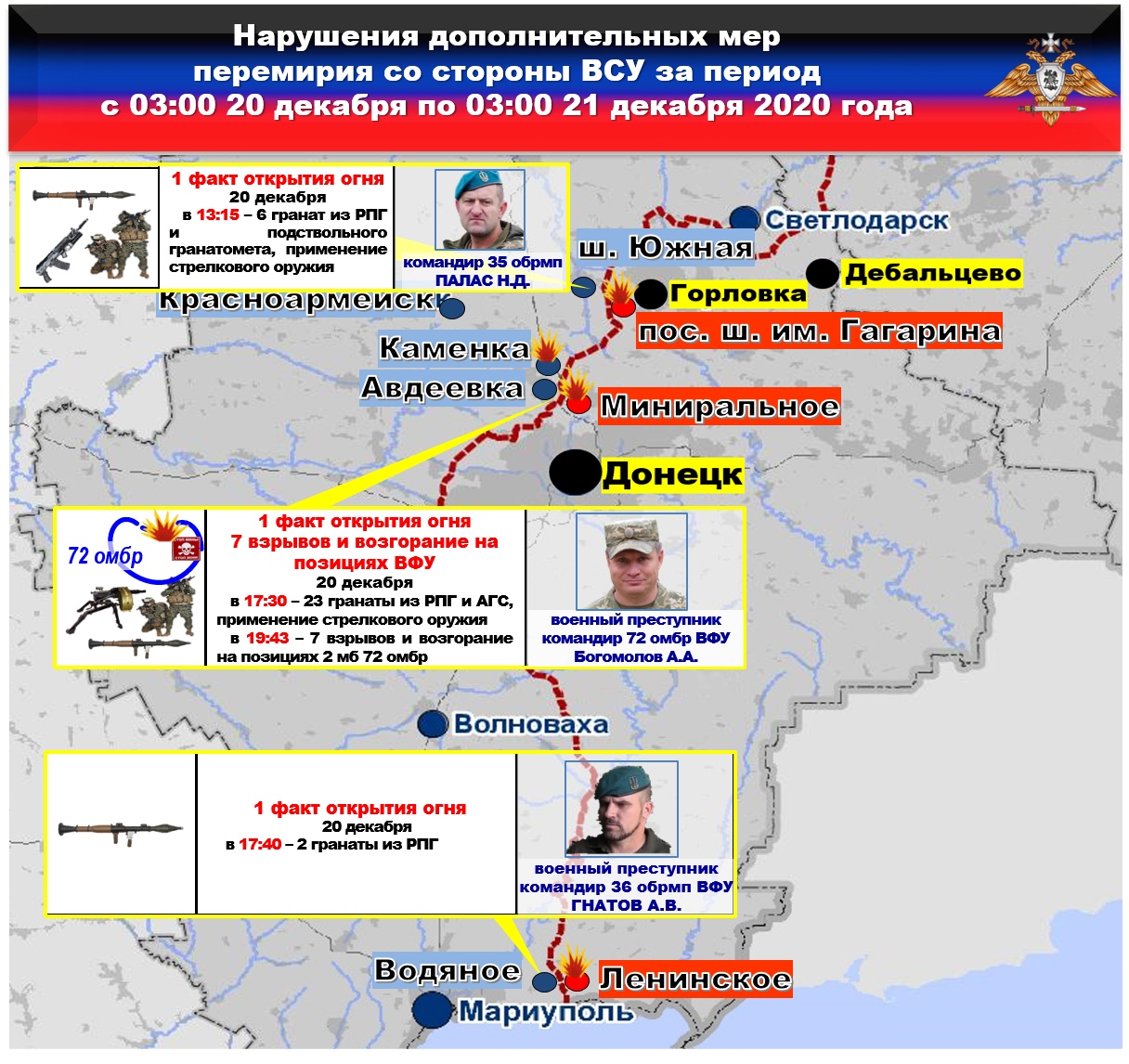 Факты грубого нарушения перемирия в оперативном порядке доведены до представителей украинской стороны в СЦКК, с целью принятия мер к нарушителям и исключения случаев фальсификации учетных данных о нарушениях режима прекращения огня со стороны украинских боевиков.