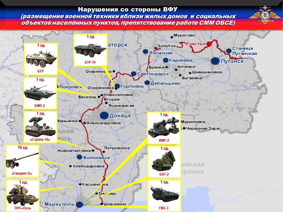 В нарушение ТРЕТЬЕГО пункта дополнительных мер, выявлено размещение ДЕСЯТИ 152-мм буксируемых гаубиц «Гиацинт Б» вблизи жилого квартала в н.п. ХЛЕБОДАРОВКА из состава 55-й артиллерийской бригады.