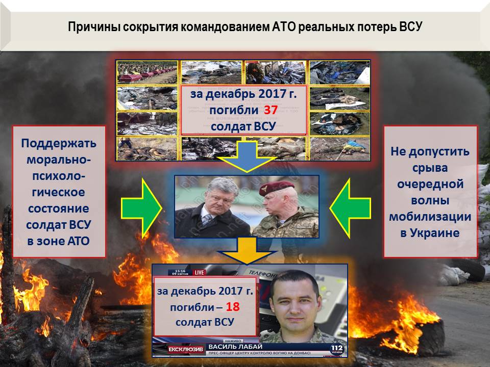— первое – попытка поддержать морально-психологическое состояние военнослужащих ВСУ, которые каждый день воочию наблюдают, как их товарищей отвозят в морг, а штаб «АТО» говорит, что «потерь нет»;