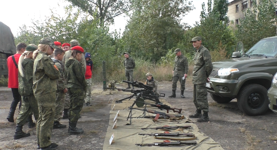 Военнослужащие Народной милиции ДНР организовали для юнармейцев выставку вооружения, а также угостили вкусной пищей из полевой кухни.