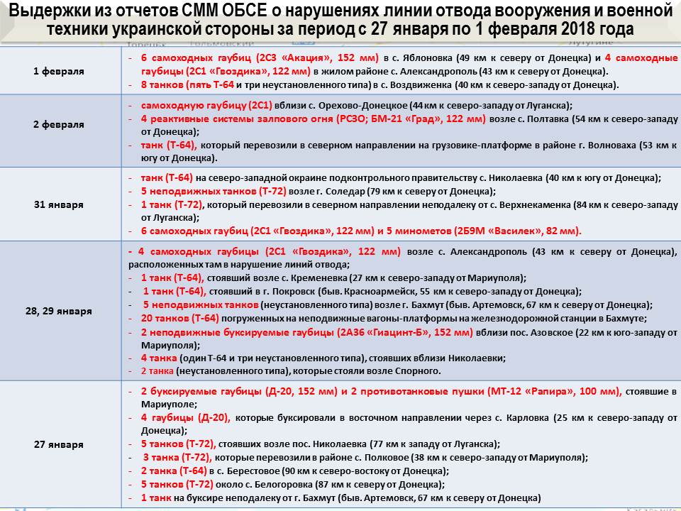 Вопреки Минским договоренностям украинское военное командование стягивает к линии фронта тяжелое вооружение, выводя его из мест временного хранения, что ежедневно отмечается в отчетах Миссии ОБСЕ.