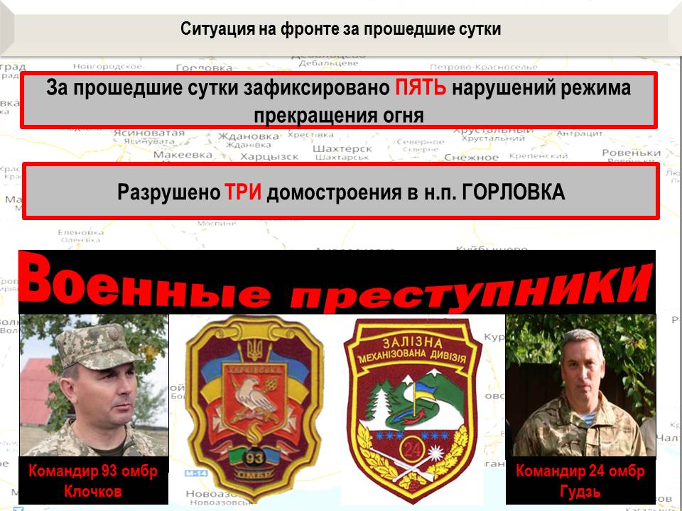 На Горловском направлении террористы из 24-й отдельной механизированной бригады вчера решили стереть с лица земли поселок шахты Гагарина. Приказ на обстрел населенного пункта отдал военный преступник Гудзь. При обстреле населенного пункта украинские террористы выпустили ДВАДЦАТЬ ТРИ артиллерийских снаряда калибром 122 мм, ТРИНАДЦАТЬ мин калибром 120 и 82 мм, произвели ДВАДЦАТЬ ШЕСТЬ танковых выстрелов, огонь также велся из гранатометов различных видов.