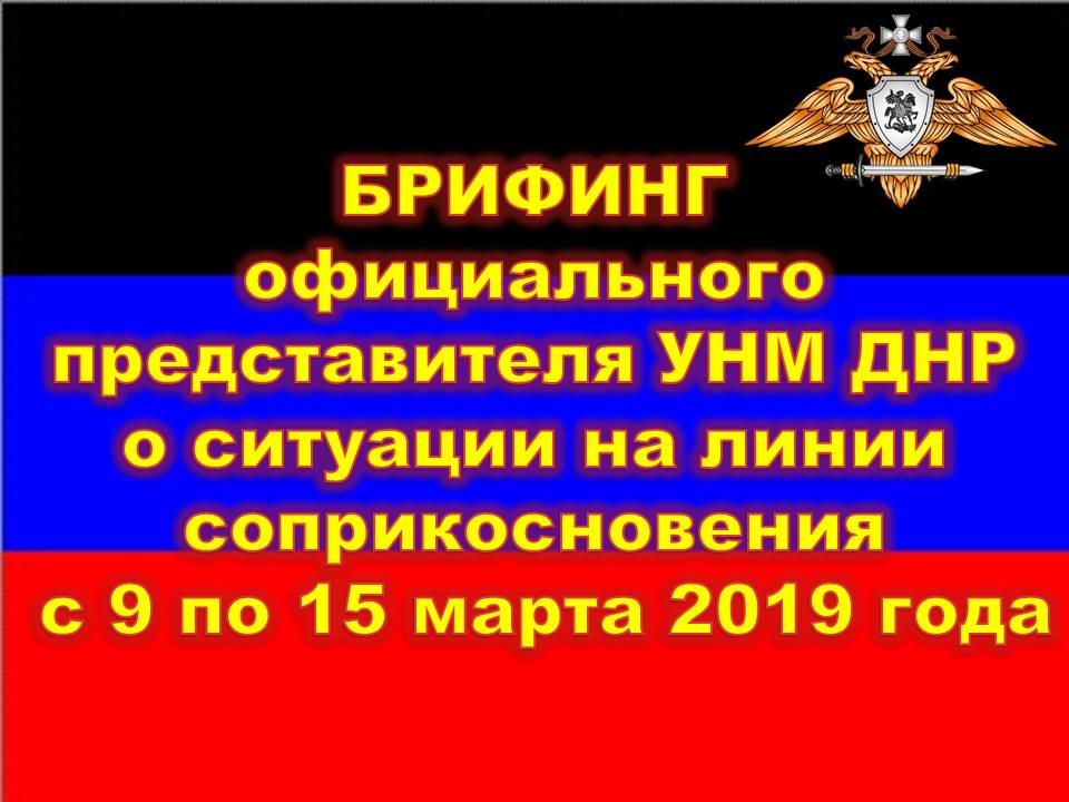 За истекший период украинские боевики сосредоточили свои агрессивные действия на уничтожение объектов гражданской инфраструктуры, а именно 13 марта 2019 года во время проведения ремонтно-восстановительных работ вблизи Васильевской насосной станции I подъема Южно-Донбасского водопровода под гранатометный обстрел со стороны позиций 93 механизированной бригады попала оперативная группа Представительства ДНР в СЦКК и ремонтная бригада КП «Компания «Вода Донбасса». Несмотря на согласованный сторонами переговоров режим перемирия, а также на полученные ранее гарантии безопасности от украинской стороны в СЦКК, ВФУ целенаправленно вели обстрел по выполнявшим ремонт рабочим и жизненно важному объекту инфраструктуры. По счастливой случайности жертв среди сотрудников СЦКК и ремонтной бригады удалось избежать.