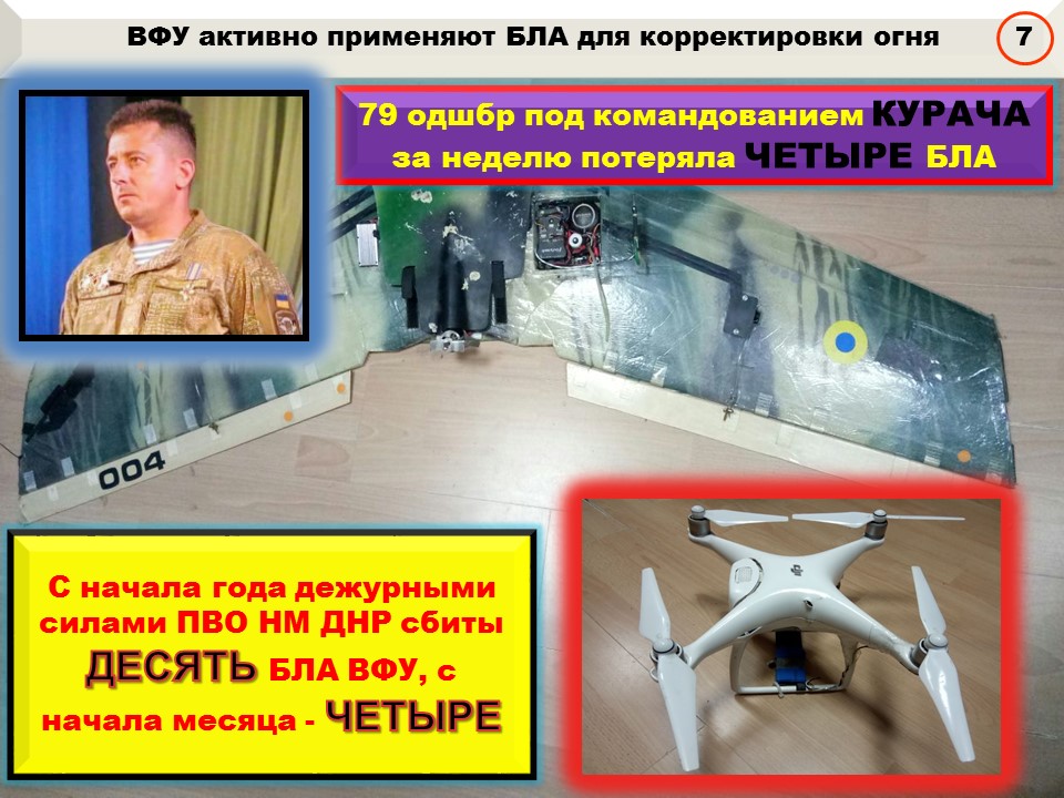 Мы продолжаем фиксировать активизацию использования противником беспилотной авиации вдоль всей линии соприкосновения. Тактика применения карателями БЛА в основном была направлена на корректировку минометного огня. 79 одшбр за неделю лишилась четыре БЛА, комиссией штаба ООС проводится разбирательство по фактам утраты беспилотников.
