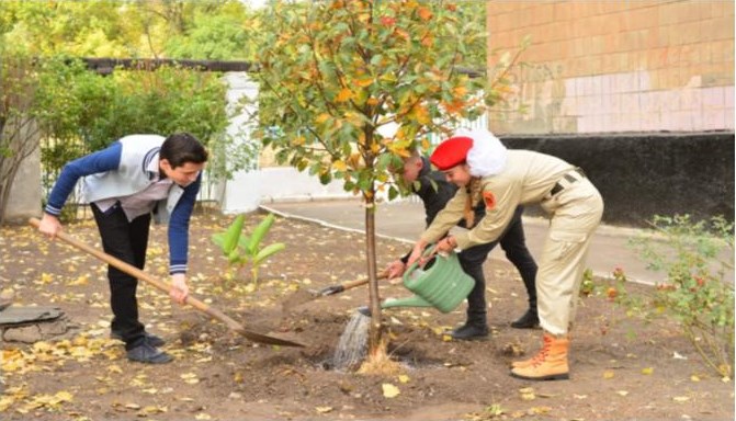 29 сентября, у стен школы № 57 города Донецка, на месте, где преступная украинская власть обстреляла жилые кварталы Донецка, в результате чего погибли 10 жителей Республики, четыре из них –ученики школы, совместно с юнармейцами посадили рябину, как символ вечной жизни и чистоты человеческой души.