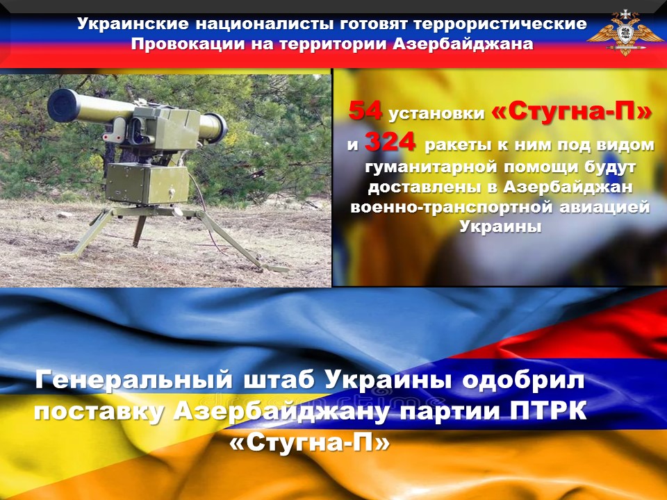 По полученной информации, Генеральный штаб Украины одобрил поставку Азербайджану партии ПТРК «Стугна-П» и направлении группы инструкторов, которые должны будут обучить военнослужащих ВС Азербайджана обращению с противотанковыми комплексами.