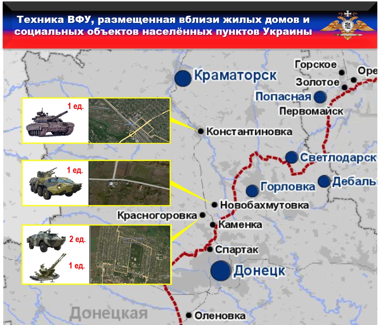 из состава 79 одшбр – ДВЕ бронированные разведывательно-дозорные машины (БРДМ-1) и ОДНА зенитная установка (ЗУ-23,23 мм) вблизи жилых домов н.п. КРАСНОГОРОВКА.