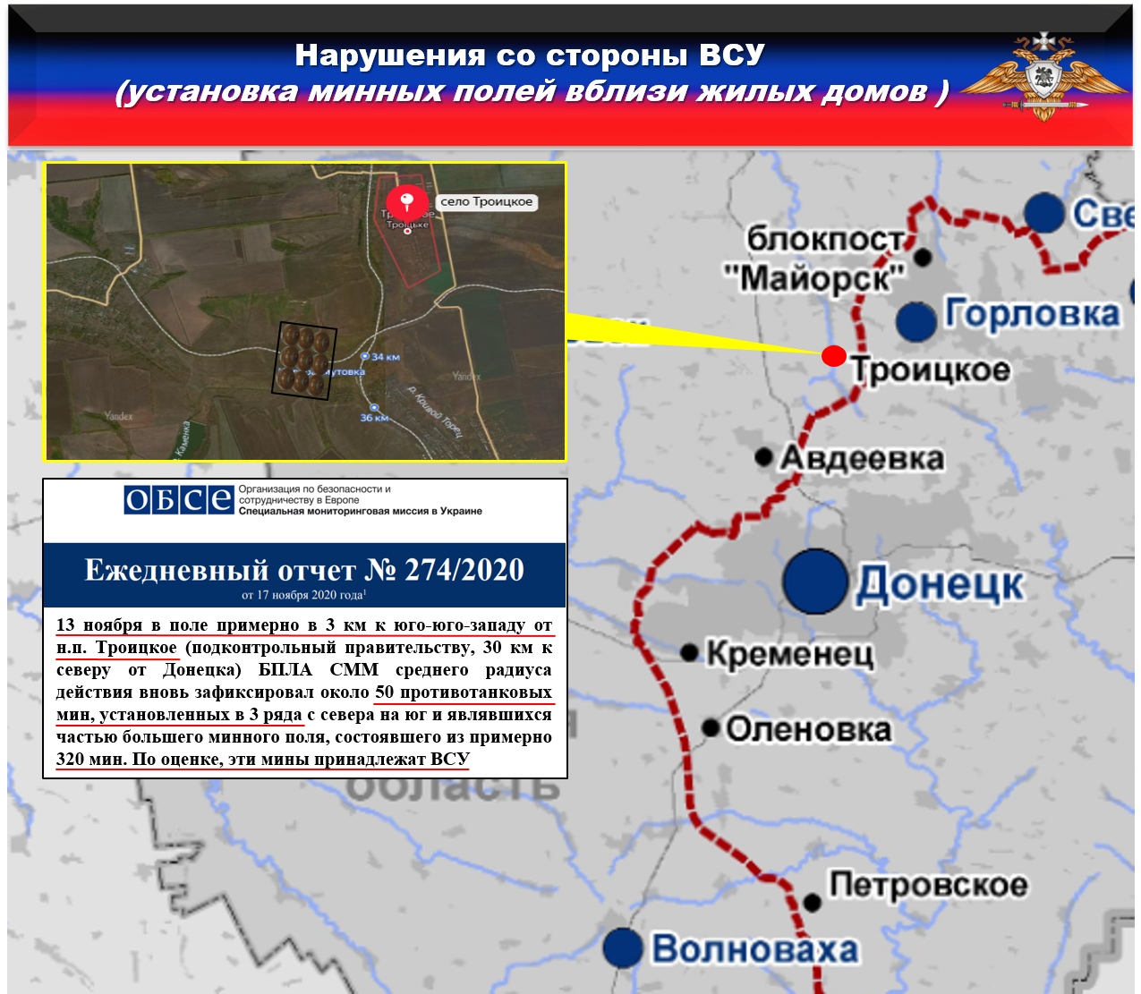 Данные факты подтверждаются отчетом СММ ОБСЕ от 17.11.2020 года.