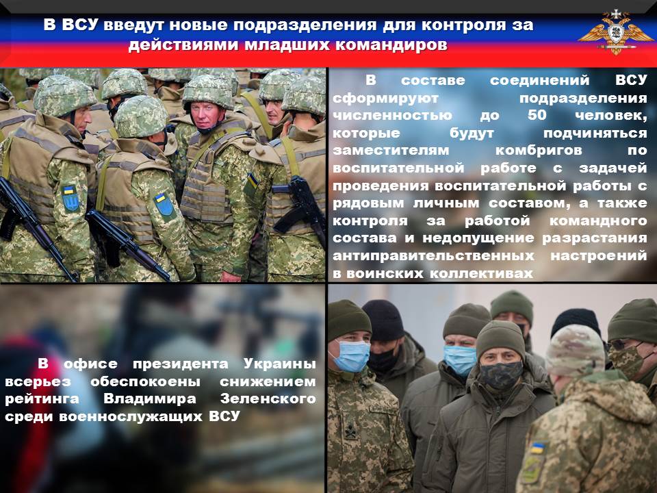 Данный факт наглядно демонстрирует, какое недоверие испытывает военно-политическое руководство Украины к своей армии, которая в большинстве своем недовольна действиями правительства Зеленского. И существенно снижает морально-психологическое состояние украинских солдат.