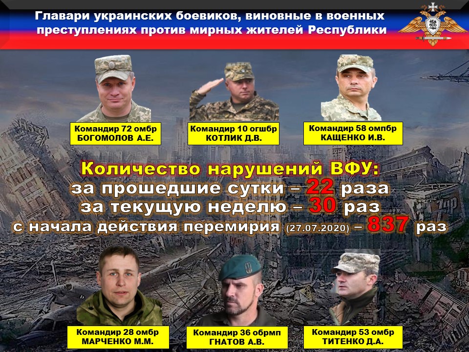 Факты нарушений в оперативном порядке доведены до представителей украинской стороны в СЦКК, с целью принятия мер к нарушителям и исключения случаев фальсификации учетных данных о нарушениях режима прекращения огня со стороны украинских боевиков.