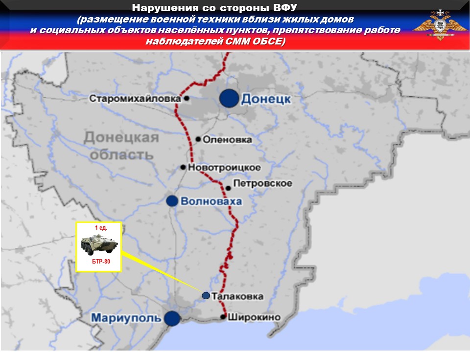В нарушение ТРЕТЬЕГО пункта дополнительных мер выявлено размещение вооружения и военной техники ВФУ вблизи жилых домов и муниципальных объектов на подконтрольной Украине территории.