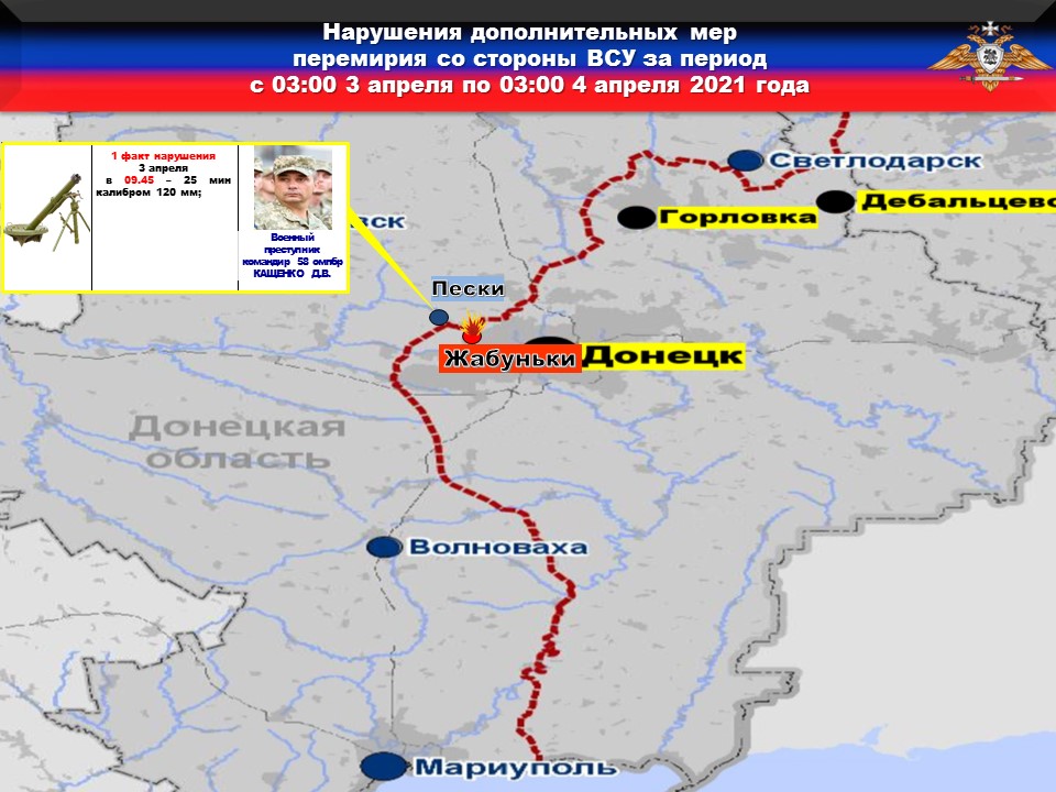Факты нарушений в оперативном порядке доведены до представителей украинской стороны в СЦКК, с целью принятия мер к нарушителям и исключения случаев фальсификации учетных данных о нарушениях режима прекращения огня со стороны украинских боевиков.