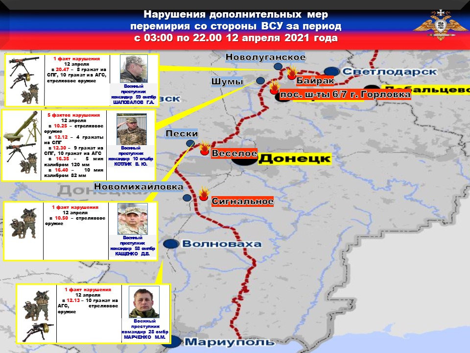 Факты нарушений в оперативном порядке доведены до представителей украинской стороны в СЦКК, с целью своевременного принятия мер к нарушителям и исключения случаев фальсификации учетных данных о нарушениях режима прекращения огня со стороны украинских боевиков.