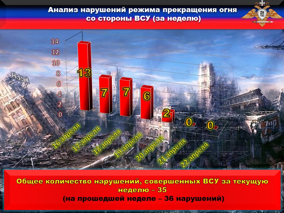 Факты нарушений в оперативном порядке доведены до представителей украинской стороны в СЦКК, с целью принятия мер дисциплинарного воздействия к военнослужащим, допустившим нарушение режима прекращения огня и исключения случаев фальсификации учетных данных о нарушениях режима прекращения огня со стороны украинских боевиков.
