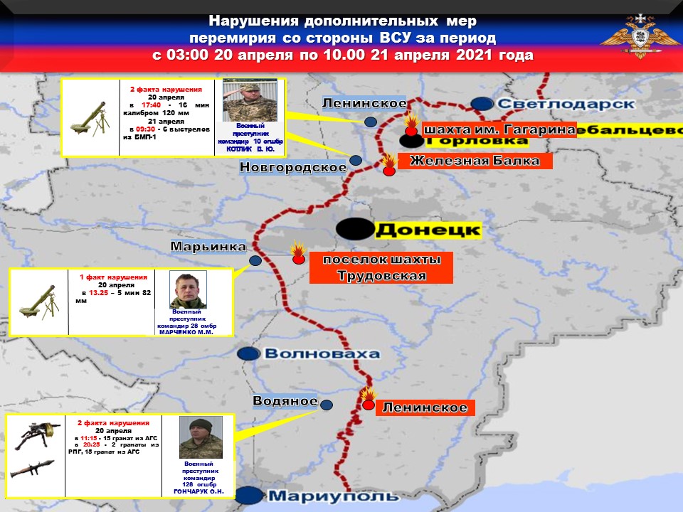 Факты нарушений в оперативном порядке доведены до представителей украинской стороны в СЦКК, с целью своевременного принятия мер к нарушителям перемирия и исключения случаев фальсификации учетных данных о нарушениях режима прекращения огня со стороны украинских боевиков.