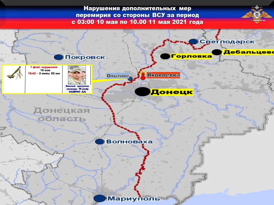 Факты нарушений в оперативном порядке доведены до представителей украинской стороны в СЦКК, с целью своевременного принятия мер к нарушителям перемирия и исключения случаев фальсификации учетных данных о нарушениях режима прекращения огня со стороны украинских боевиков.