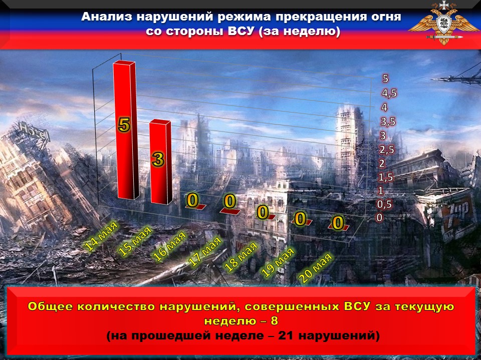 За прошедшие сутки с 14 на 15 мая со стороны украинских боевиков зафиксировано ПЯТЬ нарушений ВТОРОГО пункта Комплекса дополнительных мер по контролю над соблюдением режима прекращения огня.