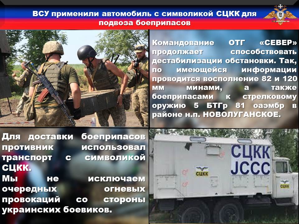 Факты нарушений в оперативном порядке доводились до представителей украинской стороны в СЦКК, с целью своевременного принятия мер к нарушителям перемирия и исключения случаев фальсификации учетных данных о нарушениях режима прекращения огня со стороны украинских боевиков.