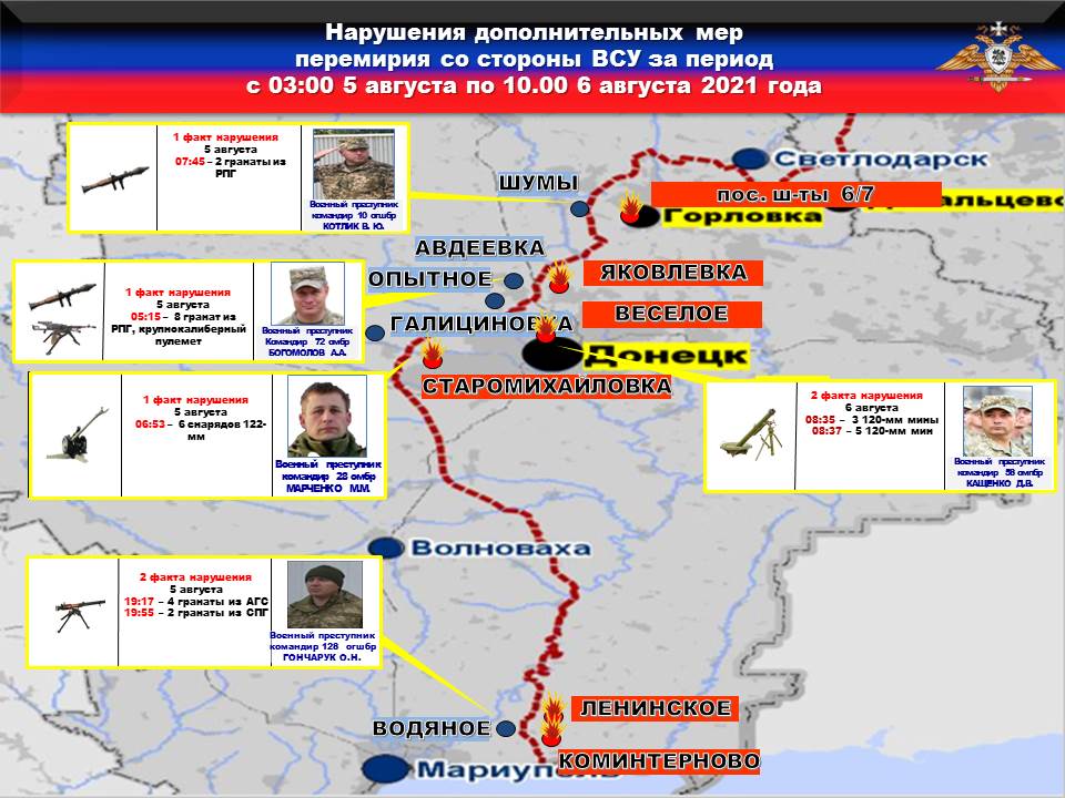 Также согласно отчета СММ ОБСЕ от 31 июля 2021 г. в районе н.п. АВДЕЕВКА боевики 72 бригады в нарушение Минских договоренностей применяли БпЛА вопреки запрета на использование любых видов летательных аппаратов, предусмотренному в решении ТКГ от 22 июля 2020 года о дополнительных мерах по усилению режима прекращения огня.