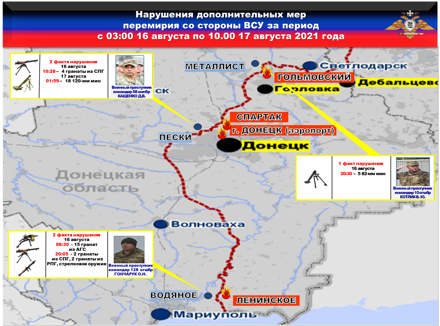 Факты нарушений в оперативном порядке доведены до представителей украинской стороны в СЦКК, с целью своевременного принятия мер к нарушителям перемирия и исключения фальсификации данных о нарушениях режима прекращения огня со стороны украинских боевиков.
