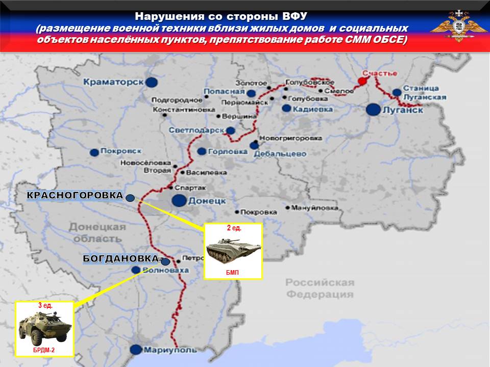 В нарушение ТРЕТЬЕГО пункта дополнительных мер, выявлено размещение ПЯТИ единиц вооружения и военной техники ВФУ вблизи жилых домов и муниципальных объектов на подконтрольной Украине территории.