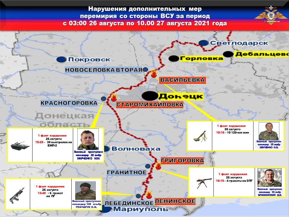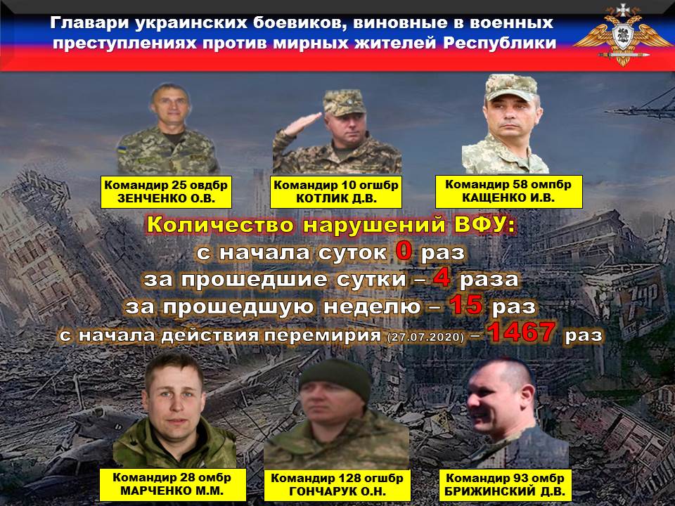 Факты нарушений в оперативном порядке доводились представителям украинской стороны в СЦКК, с целью своевременного принятия мер к нарушителям перемирия и исключения случаев фальсификации учетных данных о нарушениях режима прекращения огня со стороны украинских боевиков.
