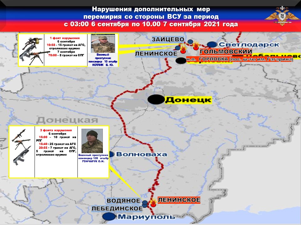 Факты нарушений в оперативном порядке доведены до представителей украинской стороны в СЦКК, с целью своевременного принятия мер к нарушителям перемирия и исключения фальсификации данных о нарушениях режима прекращения огня со стороны украинских боевиков.